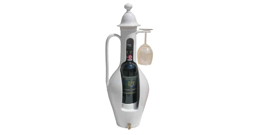ll termine capasone deriva dall’ aggettivo capase (capace) ed indica il più capace e il più ampio di tutti i recipienti. In passato era usato soprattutto in Puglia per conservare il vino utilizzato al posto delle botti prima che entrassero in funzioni le cantine sociali. Oggi da contenitore per il vino il Capasone diventa la culla e cornice di pregiati vini, in una rielaborazione delle forme, gli oggetti della nostra ricca tradizione ceramica Grottagliese rivivono e si ridisegnano in una elegante commistione tra passato e moderno.
